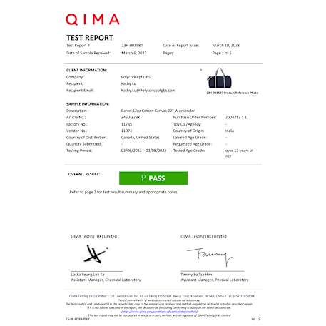 Materials : 12 oz. Cotton Canvas