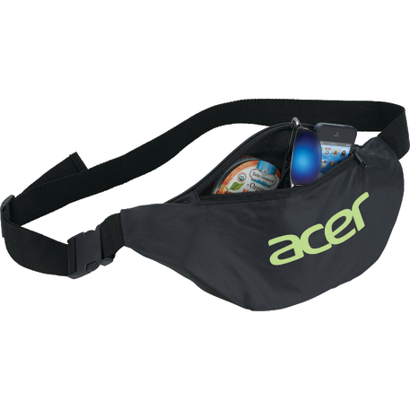 The Hipster Budget Fanny Pack is as cool as they come with a zippered main compartment and an adjustable waist strap and buckle. The belt extends to be about 47in. Minimum size of waistband is 14".