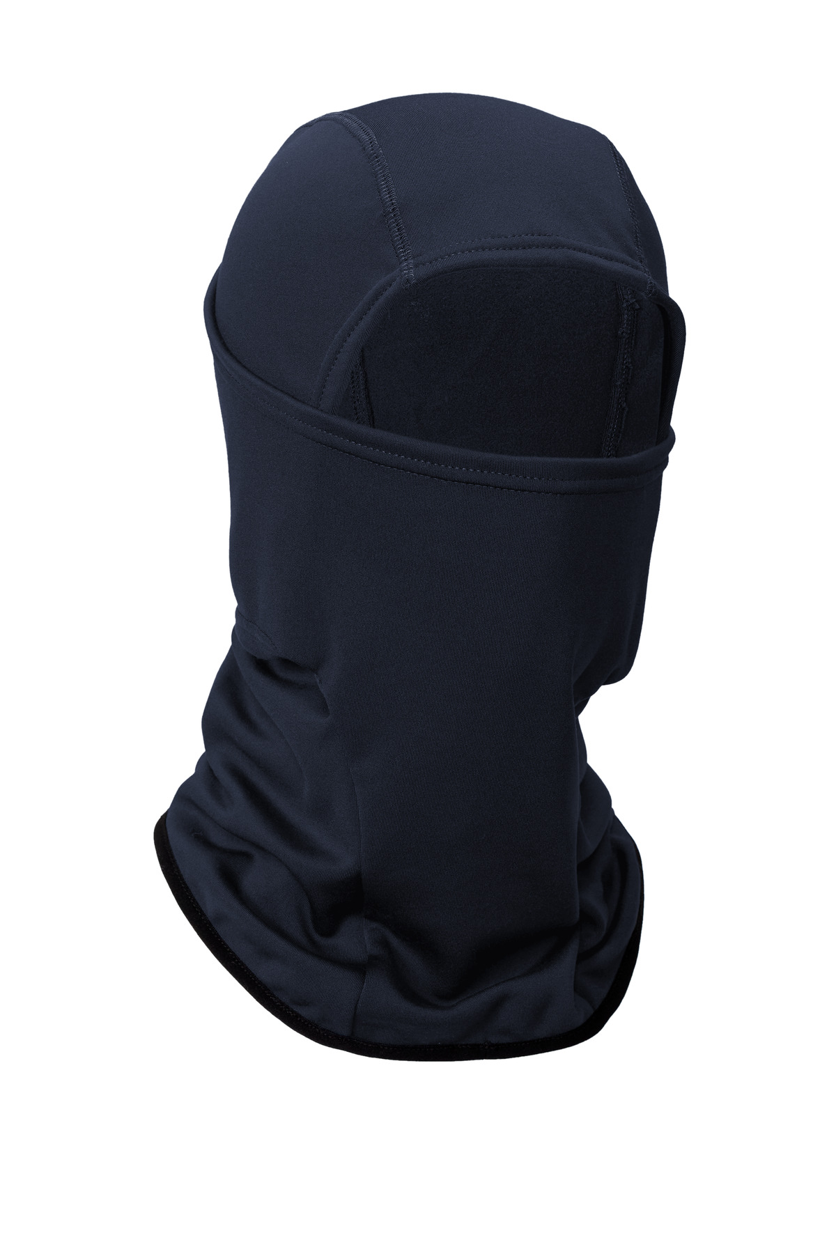 94/6 poly/spandex,Brushed fleece interior,Can easily stretch opening under nose and mouth for additional breathability,Articulated seams at neck and sides of face for fit