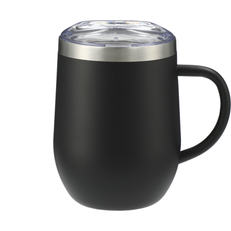 Durable, double-wall stainless steel vacuum construction with copper insulation, which allows your beverage to stay cold for 24 hours and hot for at least 6 hours. Features the durable stainless steel handle design. The construction also prevents condensation on the outside of the piece. On-trend, durable powder coating. 12oz.