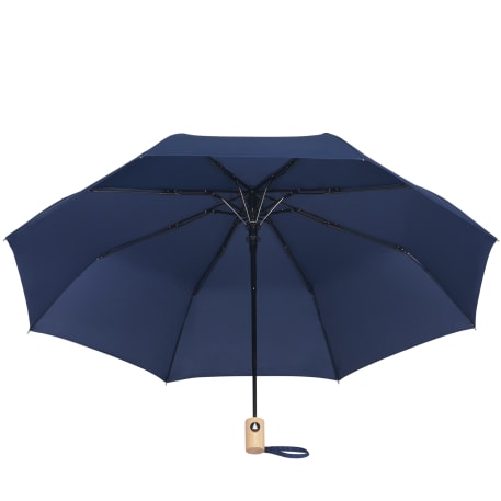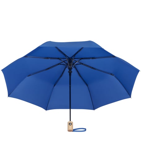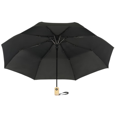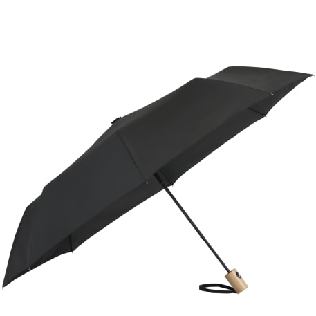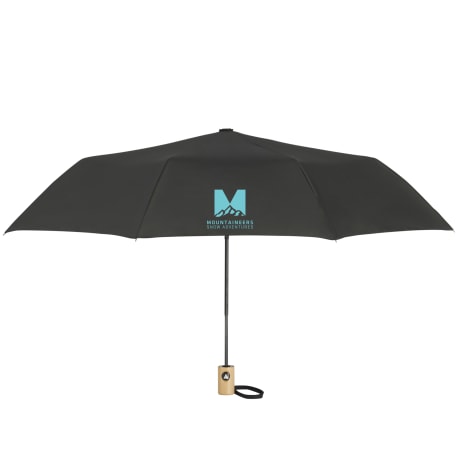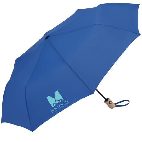 The 42" Folding Auto Open Umbrella is the perfect size. This umbrella is made metal and fiberglass and features and FSC wood handle with ABS button. It's easy to store with it's matching RPET sleeve that comes in an FSC pouch! Wind rated up to 25mph.