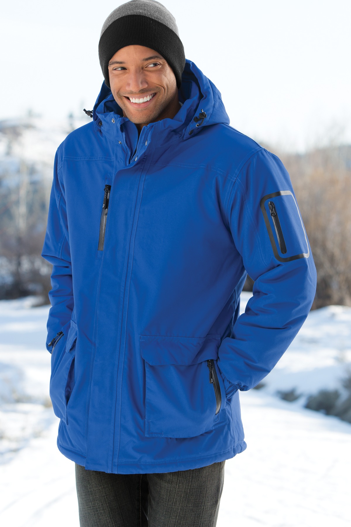Designed to take on unforgiving weather, our parka is warm and versatile. With a 6-ounce polyfill-lined body and 4-ounce polyfill-lined sleeves, this fully seam-sealed parka offers substantial water-repellent protection. In the harshest conditions, it can be worn over our Down Jacket (J323, sold separately) for increased protection.,100% polyester shell, 100% polyester quilted lining,8000MM fabric waterproof rating,Fully seam-sealed for added waterproof protection,3000G/M fabric breathability rating,Snap-off adjustable hood,Storm flap,Two-way Vislon zipper with ergonomic pull,Waterproof welded sleeve pocket,Waterproof zippered pockets,Hand warmer pocket,Bellow pockets for storage,Molded adjustable tab cuffs with hook and loop closures,Interior media pocket,Open hem with drawcord and toggles,Port Pocket for decoration access