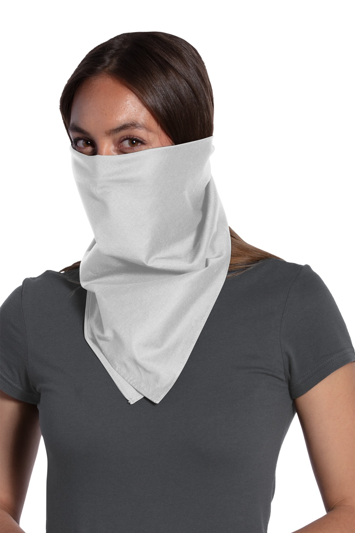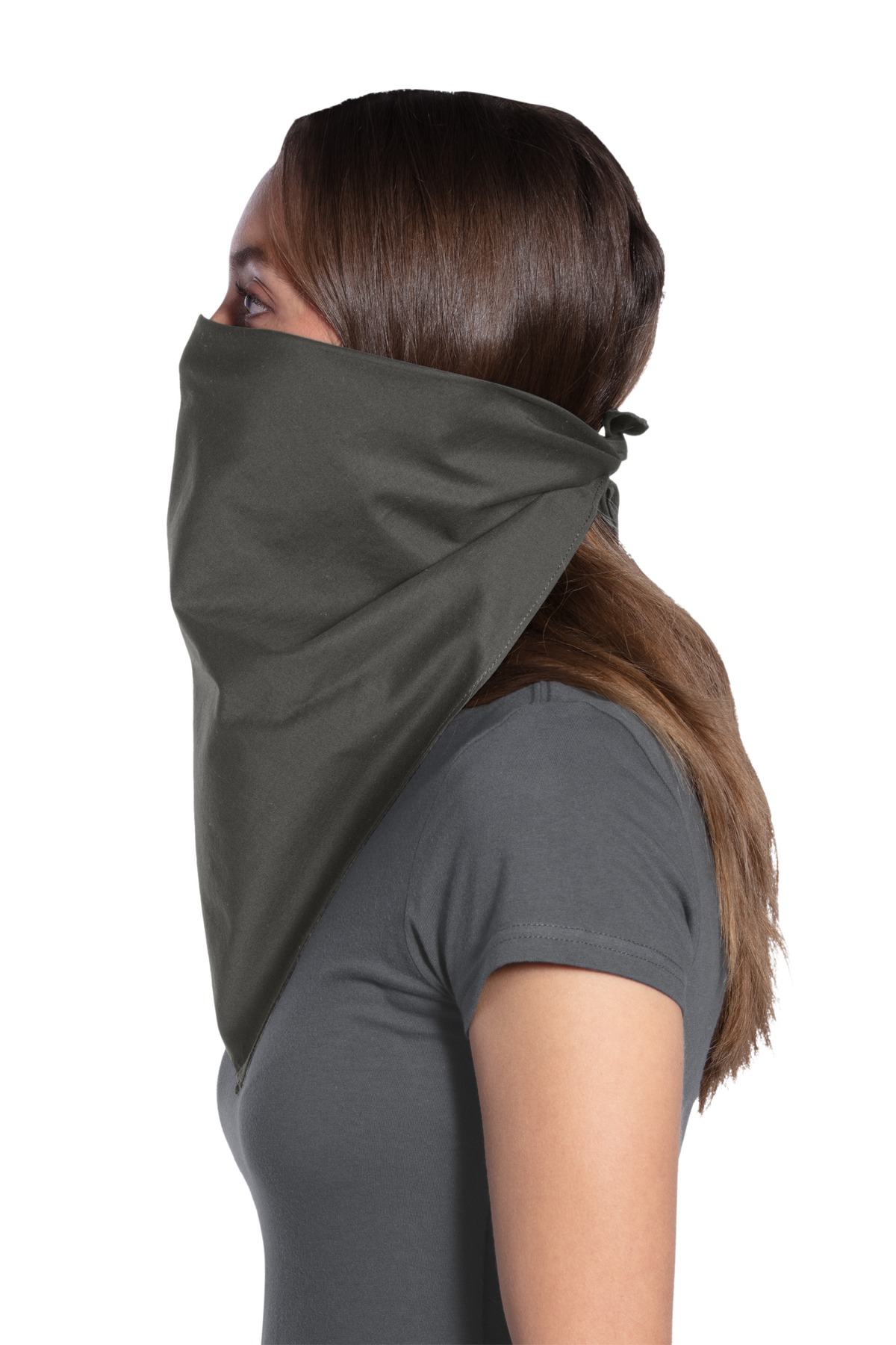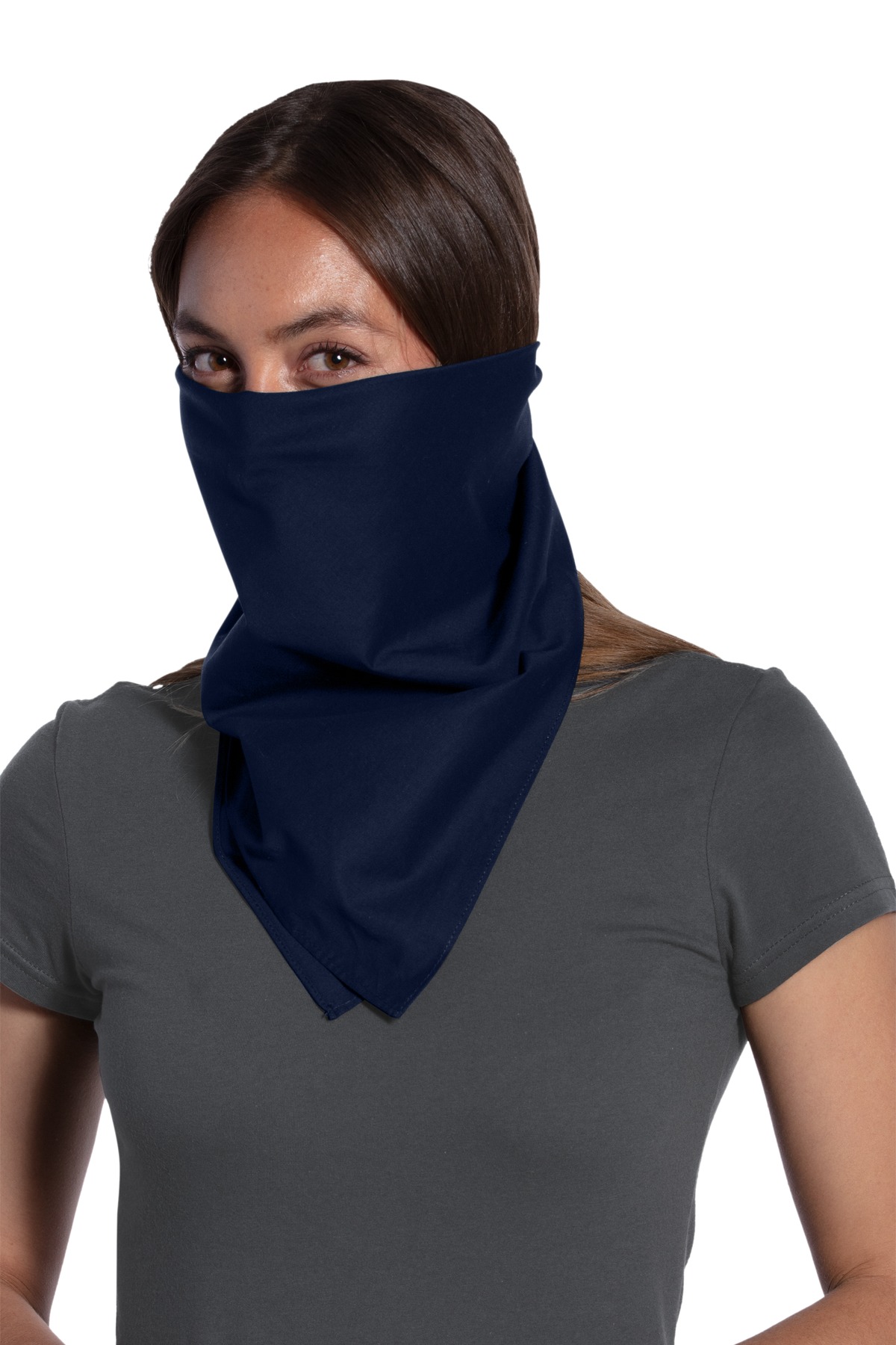 Sized larger than an average bandana, this durable bandana offers more face covering and decoration space. Versatile and multifunctional, it can also serve as a headband or neckerchief. Fold bandana diagonally and tie around head to cover face as desired.,80/20 poly/cotton sheeting,Finished seams prevent fraying,Measures: 23" x 23",Machine washable