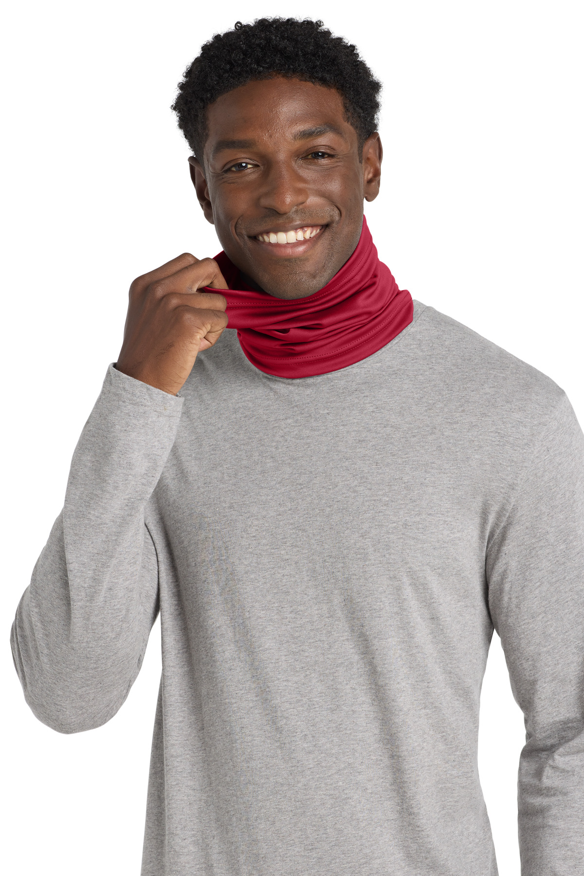 This gaiter serves as a multi-functional, versatile face covering as well as a headband, neckerchief, hood and sun guard. Pull over head, arrange at neck and pull up to cover head and face as desired.,95/5 poly/spandex,UPF rating of 50+,Dimensions: 19" x 9",Machine washable,Non-returnable