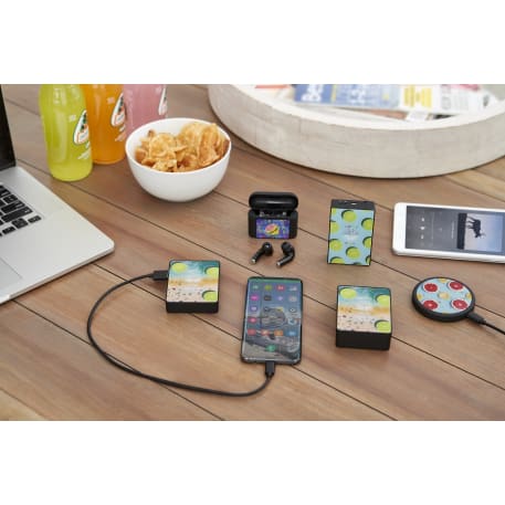 The Looking Glass Wireless Charging Pad lets you charge your smartphone without the cables. The tempered glass on the surface offers a vivid, customized look. It supports 5W wireless charging for most newer devices. To charge a phone without wireless technology, an external Qi-standard wireless charging receiver or receiver case is required. Works with most plastic phone cases on. Includes a 39-inch USB-A to Type-C charging cable. Packaged in a premium gift box.